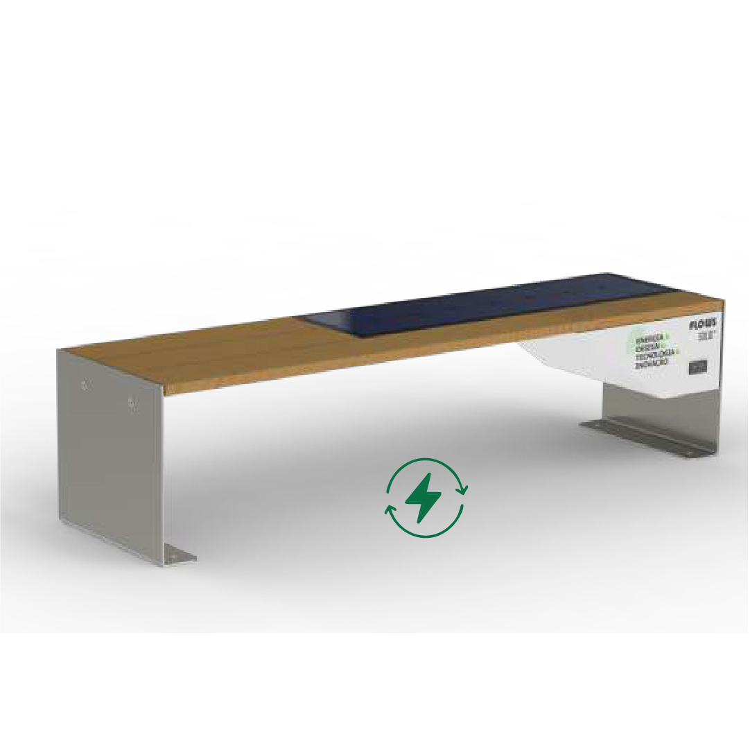 Na parte superior do banco estão localizados os painéis fotovoltaicos que geram energia a partir da luz solar. A energia gerada é armazenada nas baterias, que estão integradas à estrutura do móvel. Essa energia então, pode ser usada através de portas USB, em diversas aplicações, como carregamento de celulares, tablets, roteadores e mais uma infinidade de outras formas.